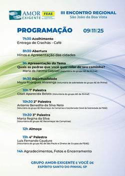 ![]() Amor Exigente Pinhal no encontro regional | ![]() Amor Exigente Pinhal no encontro regional | ![]() Congresso/2025 emBelo Horizonte - MG |